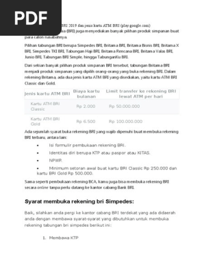 Syarat Buka Rekening Bri 2019 Dan Jenis Kartu Atm Bri Rtf