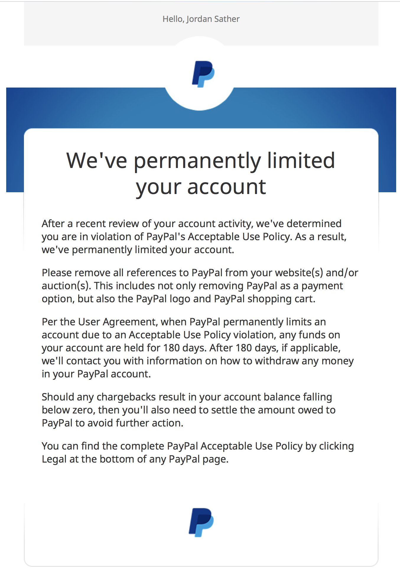 Account Permanently Limited After 18 Years Of Use Paypal